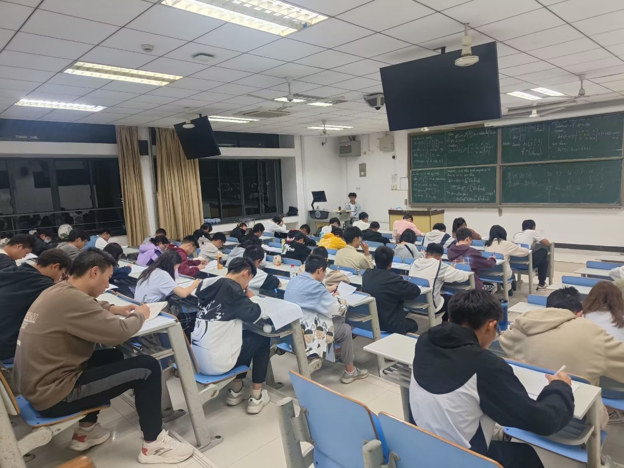 2023级全体新生。模拟考试之前,学习部通过学委群发布了模拟考试的通知,做到了提前告知并且督促各班学委落实。模拟考试时,为了保证考试的公平性,邀请了各班的副班主任监考,同时副班主任们明确了考场要求,考试过程中,同学们按要求落座,公平认真地进行了数学模拟考试,时而奋笔疾书,时而搁笔凝思。结束后,各位同学自己批改试卷,在保证质量的情况下以最快的速度得出考试成绩,知道自己的对错,找出自己的漏洞。模拟考试成绩也在第一时间内收集上报给辅导员。