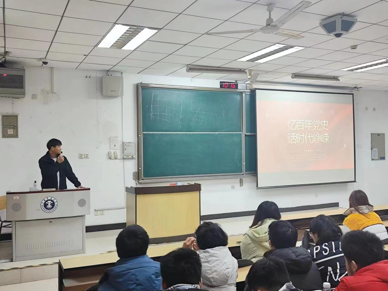 活动的最后,王奥松同学介绍了党史的理论知识,然后最后通过一个视频短片进行了总结,对同学们对党的历史和新时代成就的认识进行了加强,激发了他们的爱国热情和责任感。同时,也是为了让学生们更好地了解党的核心价值观和奋斗精神,为他们未来的成长和发展打下坚实的基础。