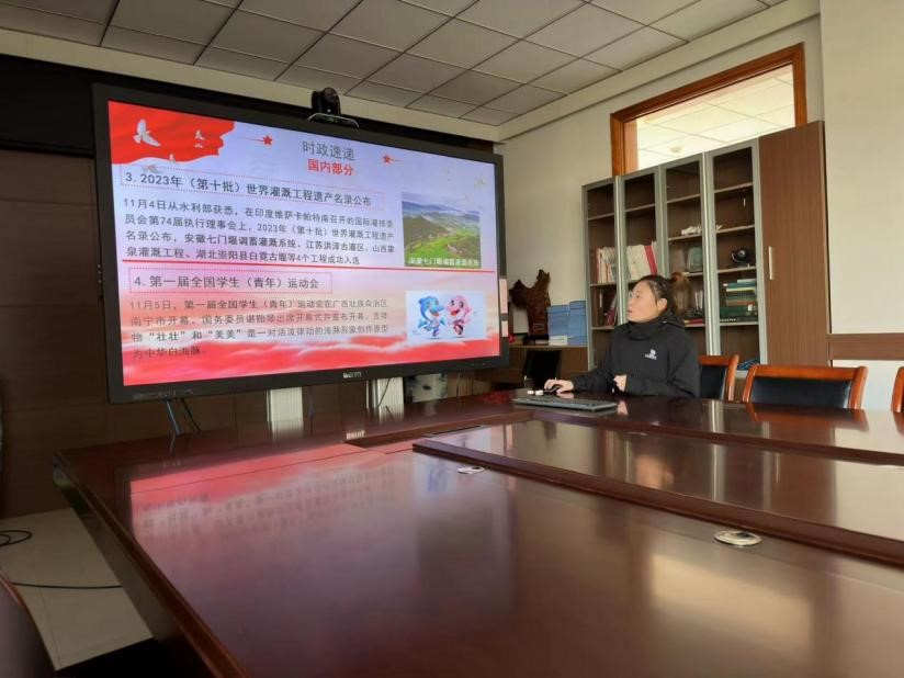 研究生会2023-2024学年第四期理论知识学习活动于环测楼A506顺利开展。本次会议由研究生会办公室副主任刘璇主持,主要从习近平总书记重要讲话、中国共产党人精神谱系专题、时政速递与时政热评等四大方面进行学习。
