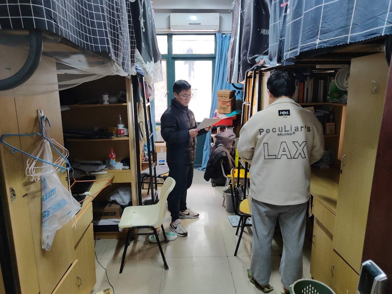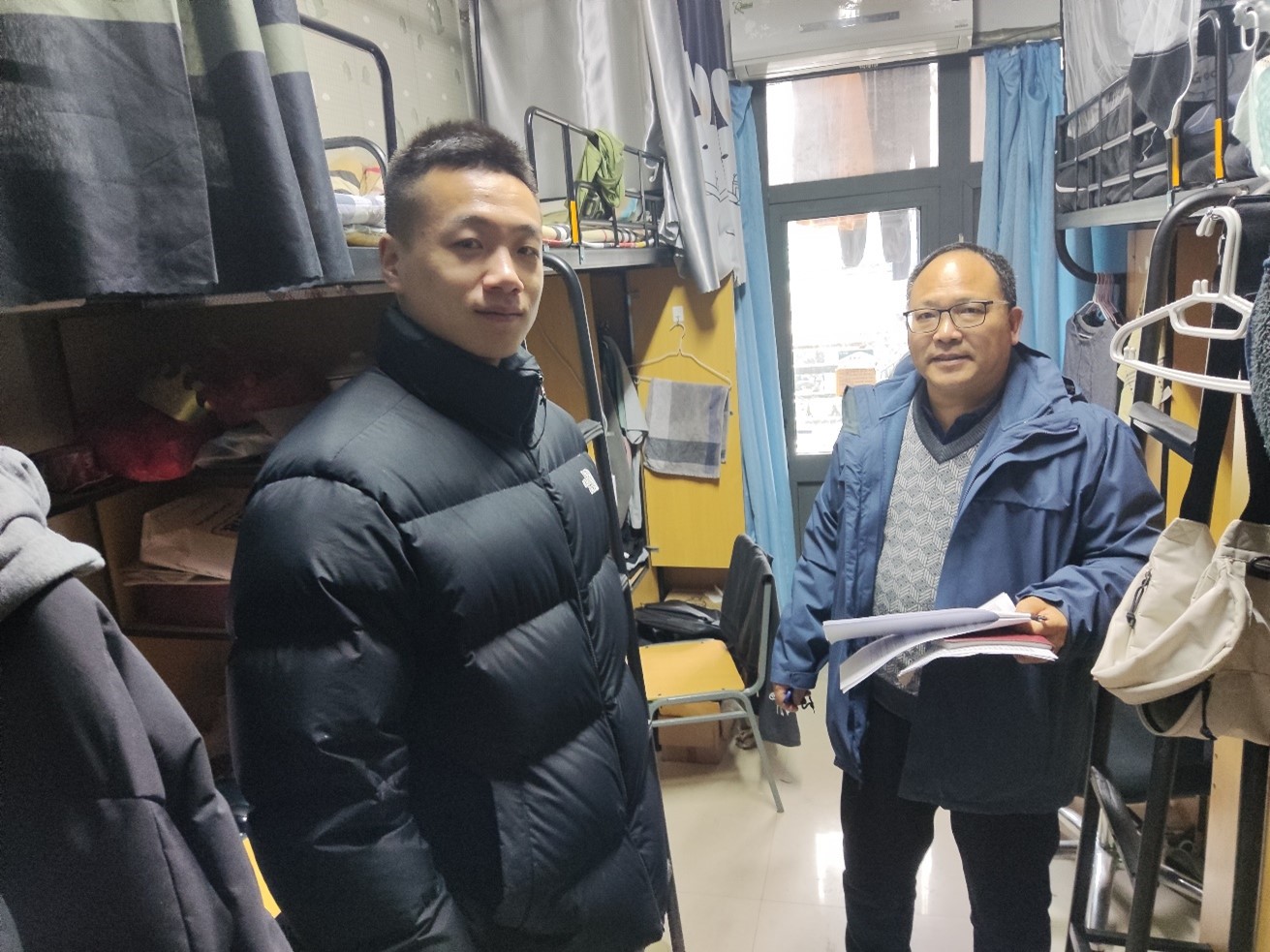 2月28日-3月1日,新学期伊始,辅导员杨政军老师带领院研究生会、院研究生党员工作站、兰苑学生社区党工委等学生干部一起,开展新学期宿舍走访工作。