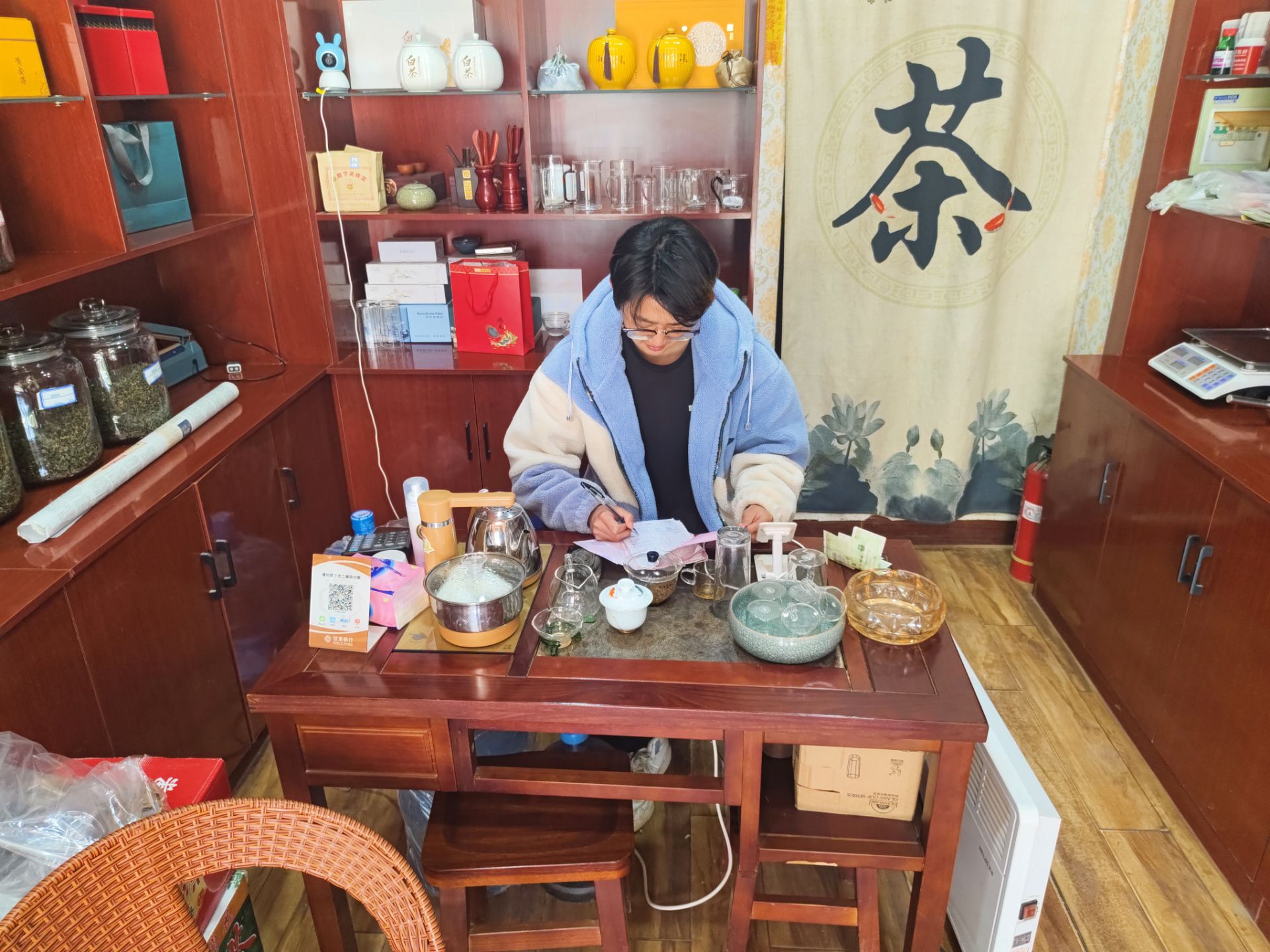 22-1班张辽于2024年1月20号到2月20号期间,在甘肃省镇原县沁香名茶店进行了时长一个月的实践活动。
