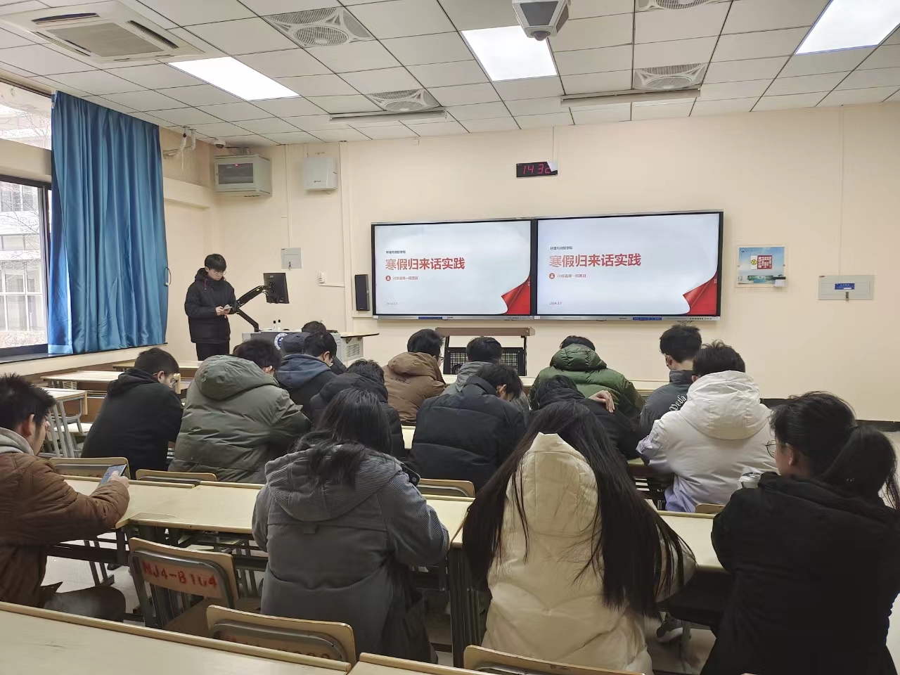 此次活动形式丰富。首先,李博宇同学给大家讲解了寒假社会实践活动对于大学生进入社会、实现自我人生价值的意义,紧接着王逍睿同学给大家分享了自己的寒假社会实践活动经历,并为还没进行过社会实践活动的同学答疑解惑;并有江才慧同学以视频的形式为大家展示了自己的社会实践成果,她的采访视频很有深度,充分体现了当代大学生对社会的深度思考。然后,张月琪同学为大家介绍了实习实训的基本流程,并为同学们进行下次社会实践做好整体规划;并有王哲同学面向大家做了关于如何发挥大学生的主观能动性和自身才智来服务他人、奉献社会的演讲,给同学们带来了很大的启发。最后,班长李博宇为大家新学期的学习和生活提出了许多建议同时激励大家多进行社会实践活动,服务社会。