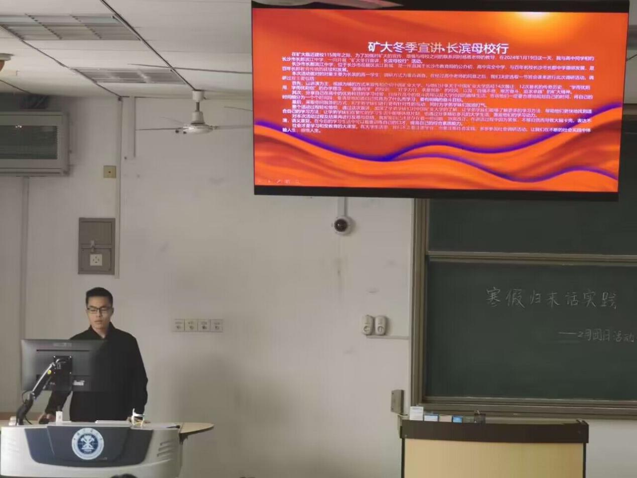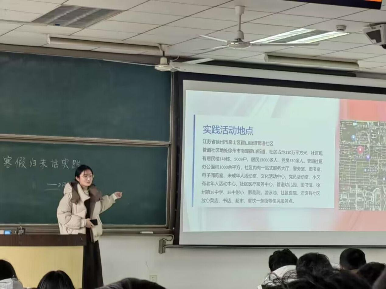 之后便是同学们的寒假社会实践报告分享环节。遥感一班团支书张译文讲述了自己参与志愿活动分发腊八粥的经历。遥感二班团支书王子赫和遥感一班李嘉舟同学则分别介绍了他们回到各自的母校分享学习经验,为肉漫画