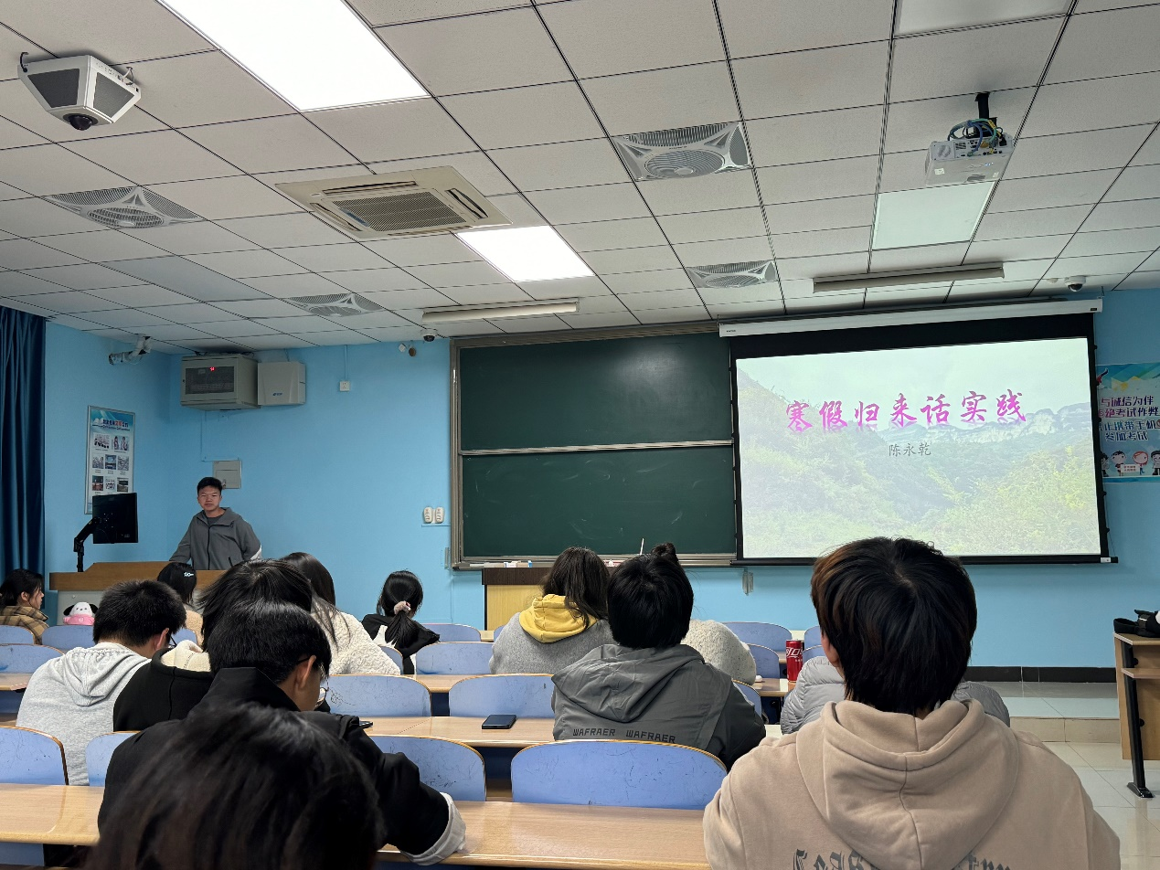 环境工程22-1班团支部在博四A403开展了以“寒假归来话实践”为主题的团日活动。本次活动由团支书陈若兰主持,宣传委员黄姝婷进行拍摄。