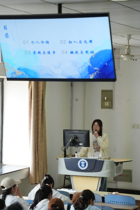 在博四C04的分享会上,首先是李儒超学长进行了分享,他强调大学生活要多参加社会实践活动,在实践中丰富自己的阅历。然后是大二的毕英楠学姐关于她大一专业第一、绩点优异的经验分享,她告诉我们,大学里学会时间管理至关重要,最后是来自新疆的彭飞老师对我们的语重心长,她说,在大学里,不仅要学会做事,更重要的是学会做人。