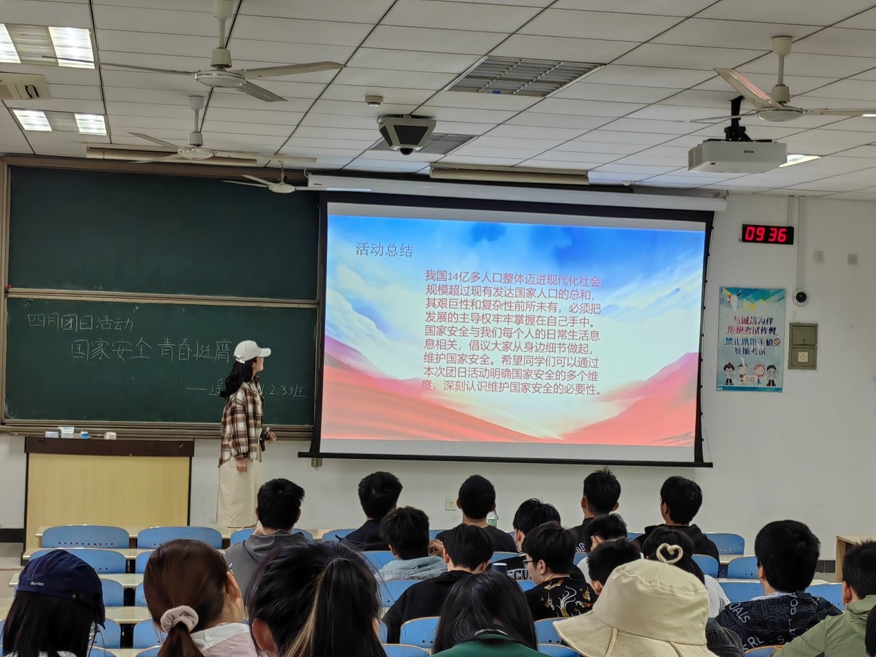 为了牢固树立维护国家安全意识,鼓励学生畅谈体会,充分展现新时代大学生良好的素养和道德风尚。遥感科学与技术23-1班,23-2班和23-3班团支部于2024年4月30日在博一A201联合举办了以“国家安全,青春挺膺”为主题的团日活动。