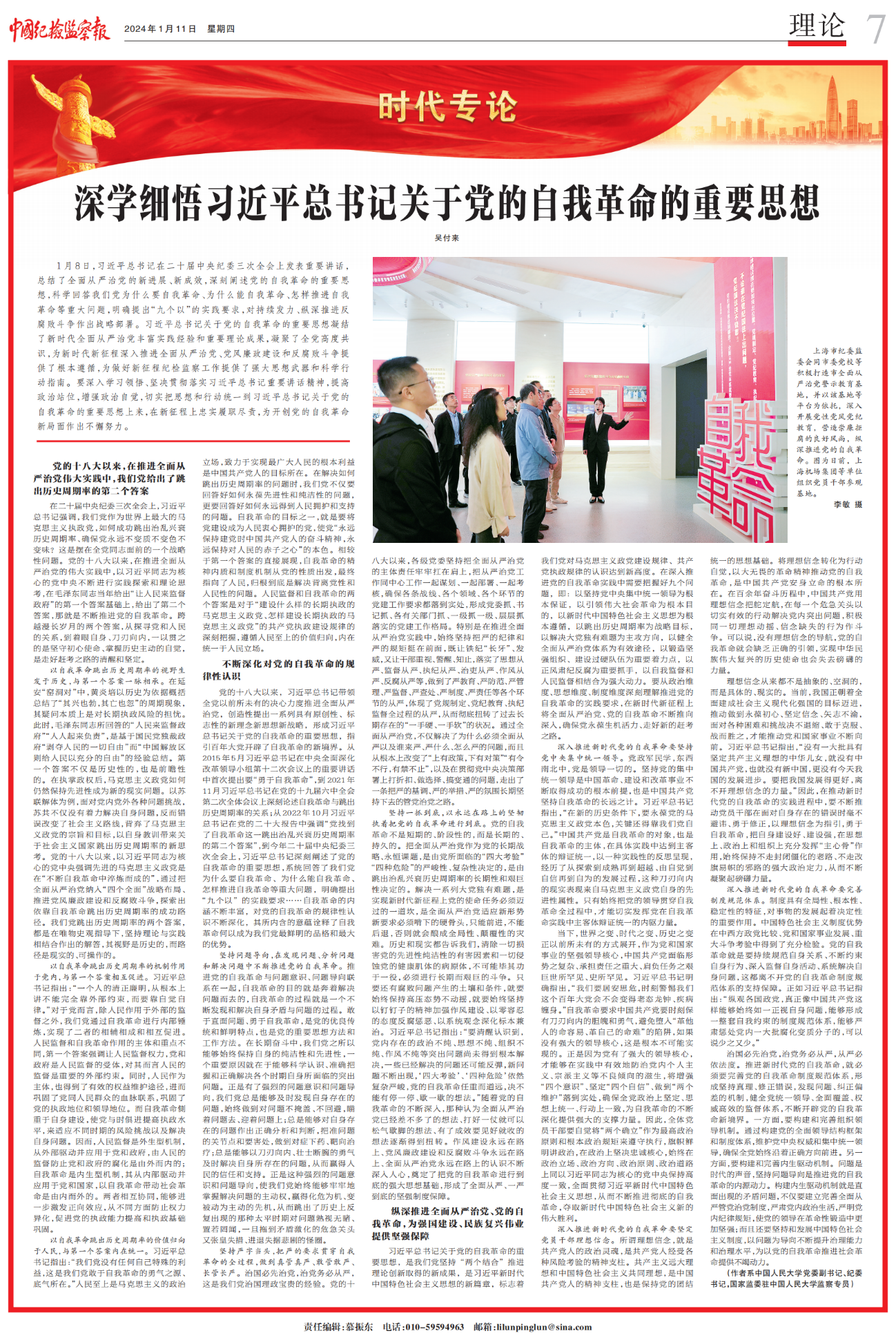 1月8日,习近平总书记在二十届中央纪委三次全会上发表重要讲话,总结了全面从严治党的新进展、新成效,深刻阐述党的自我革命的重要思想,科学回答我们党为什么要自我革命、为什么能自我革命、怎样推进自我革命等重大问题,明确提出“九个以”的实践要求,对持续发力、纵深推进反腐败斗争作出战略部署。习近平总书记关于党的自我革命的重要思想凝结了新时代全面从严治党丰富实践经验和重要理论成果,凝聚了全党高度共识,为新时代新征程深入推进全面从严治党、党风廉政建设和反腐败斗争提供了根本遵循,为做好新征程纪检监察工作提供了强大思想武器和科学行动指南。要深入学习领悟、坚决贯彻落实习近平总书记重要讲话精神,提高政治站位,增强政治自觉,切实把思想和行动统一到习近平总书记关于党的自我革命的重要思想上来,在新征程上忠实履职尽责,为开创党的自我革命新局面作出不懈努力。